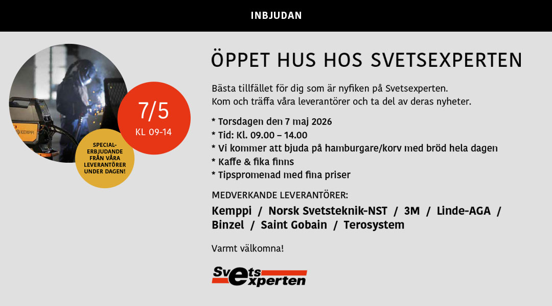 Svetsexperten är en auktoriserad återförsäljare inom svets, svetstillbehör, tillsatsmaterial, skyddsutrustning, slipmaterial, verktyg och mycket mer. Vi representerar i stort sett samtliga ledande varumärken/leverantörer och är certifierad Kemppiverkstad.